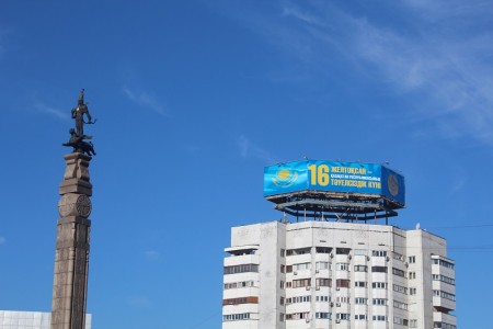 Қала халқының назарына ұсынылған билбордтардың бірі.
