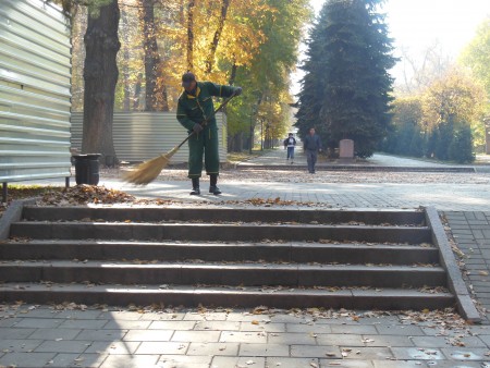 Саудырап түскен жапырақтарды жинап үлгере алмай жатқан еңбекқор қызметкерлерге айтар алғысымыз мол.