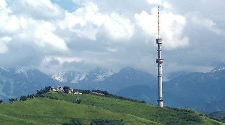 Атақты «Көктөбедегі» бұл телевизиялық діңгек сегіз жыл бойы салынды. Мұнараның ұзындығы 370 метр, дегенмен бұл мұнараның басындағы антеннасы теңіз деңгейінен 1130 метр биіктікте орналасқан. «Сталлактитпен» әшекейленген аппараттық-студиялық кешенде қазақ телевидениесінің 2 павильоны және 146 метр биіктікте көру алаңы – мейрамхана орналасқан.