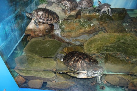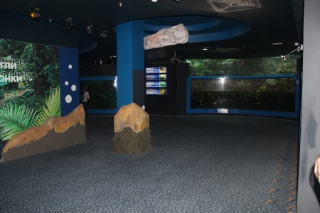 Бірінші көрме аумағына Оңтүстік Америка мен Оңтүстік-Шығыс Азияның тұщы суларын мекен етушілер қойылған. Тап осы жерден бұларға қоса, теңіздер мен мұхиттар жағалауларының теңіз жұлдыздарын, бағзы замандар өкілі - хелицерилерді-ершікшаяндарды, саяқ-шаяндарды, ұзынмұрттарды және теңіз шаянын көруге болады.