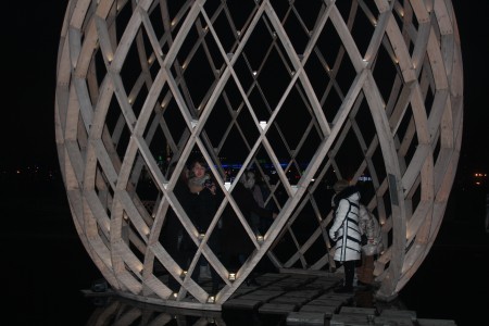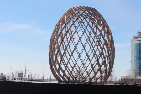 Сұлулық пен махаббат иісі мүңкитін саябақта көрінісі көз тартарлық тағы да бір дүние бар. Ол – жуырда ғана орнатылған ағаш жұмыртқа.
