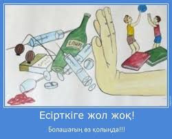 Ұстаздарымыз және ата-аналарымыз біздің жаман әдетке бой алдырмауымыз үшін есірткінің салдары туралы үнемі айтып отырады, оның опа бермейтіні туралы ұқтырып, нақты мысалдар келтіріп отырады. Бос уақытымызды қалай, кіммен өткізетінімізді ата-аналарымыз назардан тыс қалдырмай бақылауда ұстайды. Мектебімізде ұстаздарымыз және медбике апайларымыздың ұйымдастыруымен үнемі нашақорлыққа қарсы іс-шаралар, акциялар тәрбие сағаттар өткізіліп, нашақорлық туралы сауалнамалар алынып отырады. «Спорт –денсаулық кепілі» дейді, салауатты өмір салтын ұстанған адамның зиянды әрекетке ешқашан бариайтыны анық. Сонымен қатар мектебімізде уақытымызды тиімді пайдалануға, салауатты өмір салтын қалыптастыруға бағытталған спорттық іс-шаралар сайыстар ұйымдастырылып отырады.Өмір» атты кемеде тұңғиыққа батпай, шексіз- ғарыш кеңістігінде бізге аманат еткен тәуелсіз мемлекетіміздің алтын кілтін жоғалтпай, көк туын көкке қарай биік көтерейік, достар!“ «Өсер елдің баласына лайық салмақты, сабырлы, білімді, жат қылықтан аулақ, елдің ертеңгі азаматы болып өсе берейік!» дегім келеді.