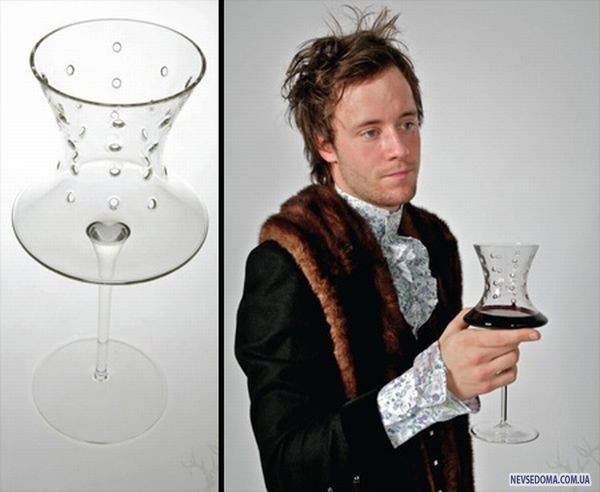Мына бокалдың түбіне шарап жиналатын өсінділері өте көп. Онда әдеттегіден көп шарап жиналады, сондықтан тек төңкеріп ішпесең, жөнді іше алмайсың. Бірақ солай істесең, шарап бетіңе, киіміңе төгіледі. Сараңдық та өзі жұтқанынан да көп жұтқысы келеді.