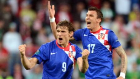 Солай болды да. Төрешінің ысқырығы естілуі мұң екен, Срна бастаған ойыншылар қарсы қақпаға лап қойды. Ойынның бірінші минутынан басталған қарсы шабуыл екінші команданы есеңгіретпей қойсын ба? Сондай сәттердің бірінде, сағат тілі 3-ші минутқа ауысқан сәтте 13 метр жерден Срна айып алаңына доп тастады. Және Марио Манджукич Гивенді қапы қалдырып, ойындағы есепті ашты. Гол! Есеп:1:0 Хорватия алда...