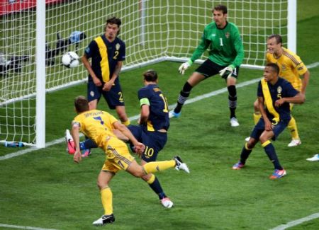 52-минуттарда алаң ортасында Селин жарақат алып, жатып қалды. Төреші ойынды жалғастыра берді. Әріптесіне алаңдаймын деп жүріп Ярмоленко жаза басты. Допты Чельстрем қағып алып, Златанға берді. Ал ол болса, өз кезегінде қақпаға бағыттай салды. Гол! Бірақ, шведтердің қуанышы ұзаққа созылмады. 55-минуттарда Ярмоленко Шеваға жоғарыдан пас тастады. Әуелеп келген допты Шева ойланбастан қақпаға бағыттады. Исакссон қақпаны қорғай алмай дәрменсіз қалды. Сол бір дәрменсіздігі тағы бір жолы қайталанды. 62-минуттарда Воронин бұрыштама добын орындауға мүмкіндік алды. Бүкіл швед қорғаушыларымен қосылып, Златан да қақпаның жақын маңын қорғауға келді. Ал не керек, бұрыштама добы орындалып, айналып ұшқан доп жақын маңға бара жатқан. Ол жерде ұзын бойлы Златанның тұрғанын көріп, бәрі үмітін үзгендей еді.. Жоқ, талантты Шева бірінші болып барып допты қақпаның жақын маңына тоғыта салды. Гол! Гол! Гол!
