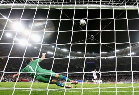 Эшли Янгтың ойын соңындағы пенальтиден мүлт кеткен тұсы. Джанлуиджи Буффонның допты көзбен шығарып салған сәті.