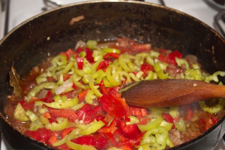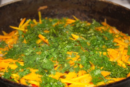 ![]() | Болгар бұрышы мен сәбіз езіліп кетпес үшін ең соңында саламыз да, араластырмастан бетін жауып, отты жай басамыз. |