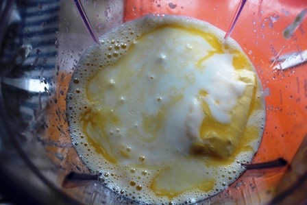 | Жұмыртқаларды миксер не блендердің көмегімен қантпен көбіктіріп араластырамыз. | |
