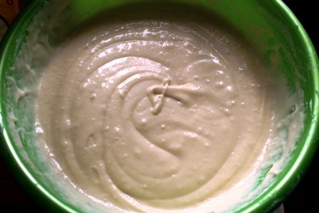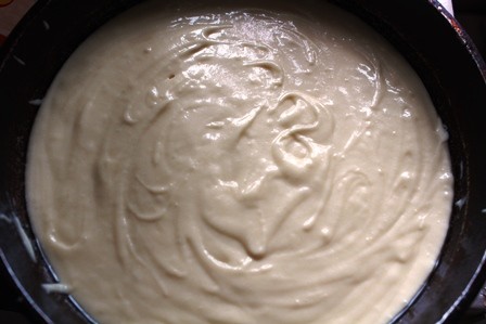 | Пісіретін пішінге май жағып, қамырды құямыз. | |