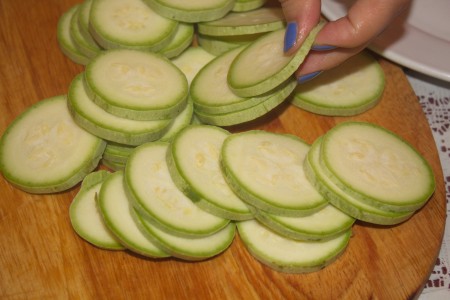 Дәл осы уақытта қызанақтарды жуып, кәдінің көлемімен бірдей етіп турап шығамыз.
