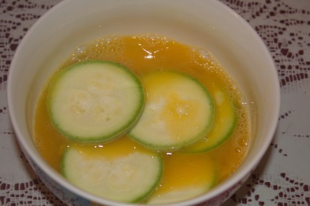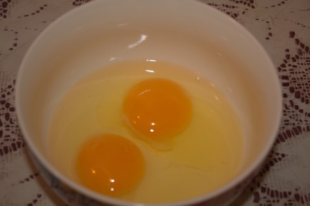 Екі жұмыртқаны ыдысқа жарып, жақсылап араластырамыз.