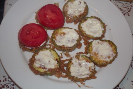 Оның бетіне дөңгелек қызанақтарды қойыңыз да, бетіне тағы да кәділерді жайыңыз. Қалауыңызша бірнеше қабатты етуіңізге болады.