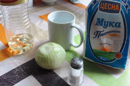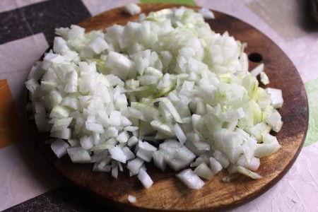 | Қамырды жаба тұрып, пиязды майда тураймыз. | |