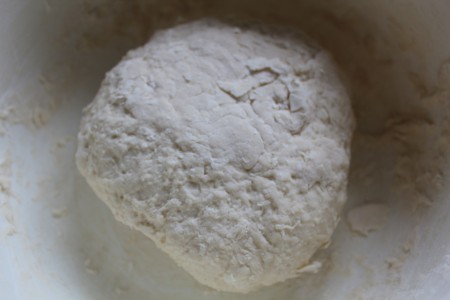 | Пышақпен суреттегідей қамырды ортасынан тілеміз. | |