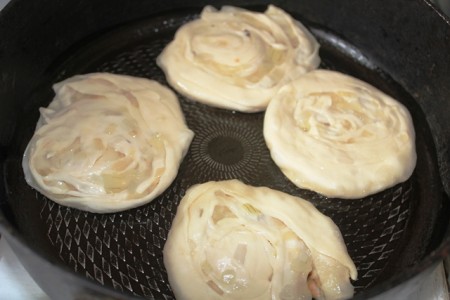 | Екінші жағына аударып, тағы май құйып қуырамыз. |