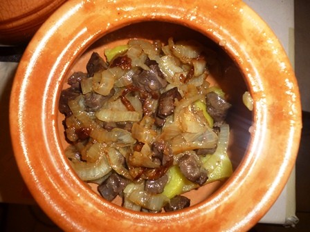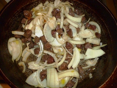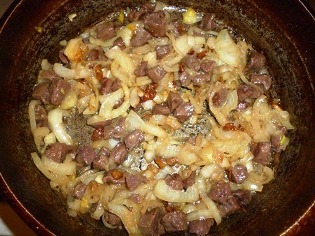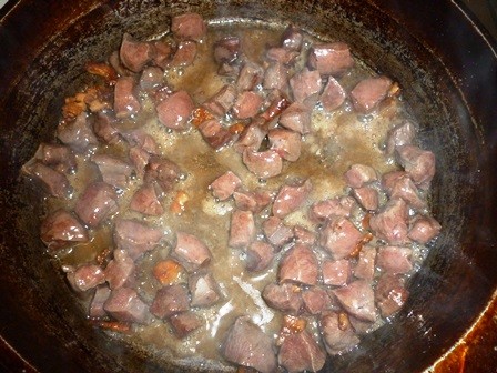 | Бауыр етін тұздап, құйрық майында қуырамыз. | |