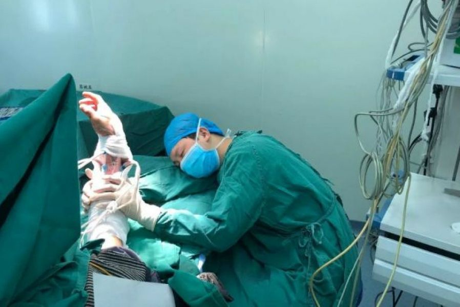 Бұл сурет WeChat әлеуметтік желісінде қызу талқылануда. Әлеуметтік желіні пайдаланушылар: «Дәрігер ұйықтап жатып та науқастың қолын ұстап тұр» деген сынды қошемет сөздерді айтуда. Дәрігердің айтуынша, қан айналымы дұрыс болуы үшін ол науқас қолын осылай ұстап тұрған. Кейін сол кездегі ота сәтті өткені белгілі болды.