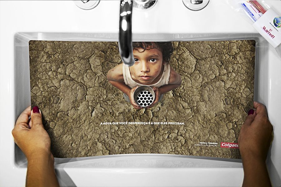 Colgate бұл мәселеге назар аударып, 60 секундтық жарнама ролигін түсірді. Видеода мынадай үндеу бар: "Бұл (тіс тазалап тұрғанда шүмектен аққан су) әлемдегі біршама адамның апталық су қорынан да көп", "Өтініш, суды өшіріп қойыңыз".