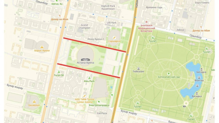 "Ауқымды концерт өтуіне байланысты қоғамдық қауіпсіздікті қамтамасыз ету, қонақтардың ыңғайлы келіп-кетуі мен қозғалысын ұйымдастыру мақсатында Астана Арена стадионы маңындағы "Алау" мұз сарайы және "Сарыарқа" велотрегі жағынан көлік қозғалысы уақытша шектеледі", - деп жазылған хабарламада.