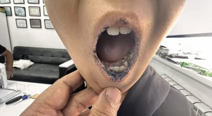 - ерін, тіл және ауыз айналасында қара-қоңыр немесе қара дақтар