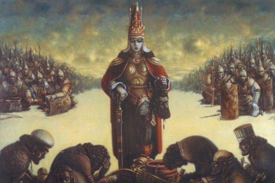 Шамамен б.з.д. 530-529 жылдары Мидия патшасы Кир көрші мемлекеттердің басым бөлігін өзіне қаратып, "Азия әміршісі" атанады. Осыдан кейін ол Ұлы далаға көзін тігеді. Осы бір жорықта Парсы патшасы Томиристің ері Рүстемді өлтіреді. Ал Кирдің құйтырқы әрекетінен тұтқынға түскен ұлы Спаргапис өз-өзіне қол жұмсайды. Жақындарынан айырылған Ұлы Патшайымды қанша қайғыға батса да, нәзік жүрегін қасірке бөксе де, рухын түсірмей, ерік жігерін жинап алып, жаумен өршелене шайқасты.