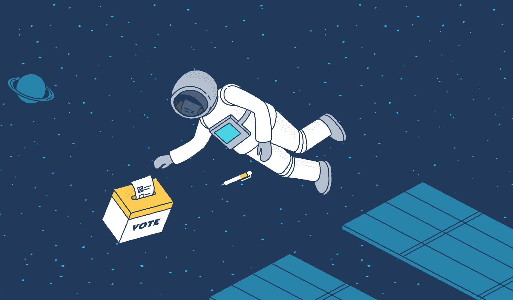 Президент сайлауында әр адамның дауысы маңызды. Ел азаматтары шетелде жүрсе де, елшілікке барып дауыс беріп жатады. Ал дауыс беруші азамат Жерде емес, ғарышта болса ше?