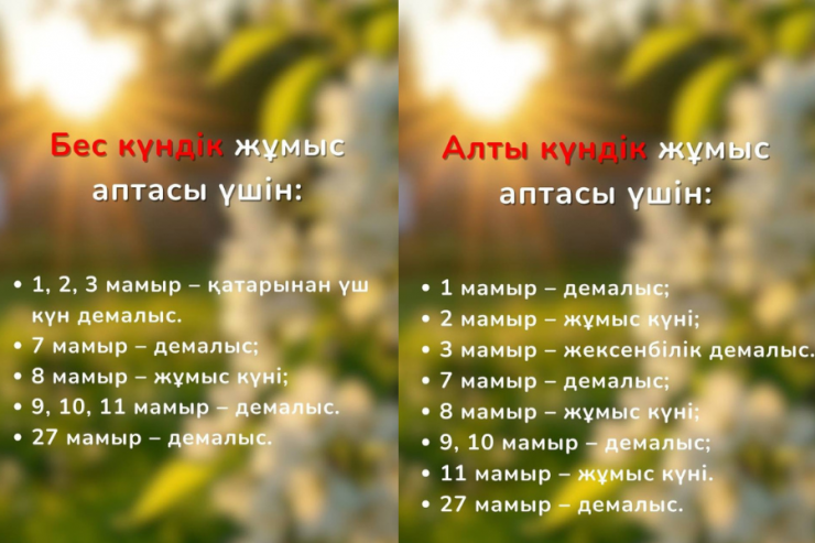 7 және 9 мамырдағы демалыс күндері