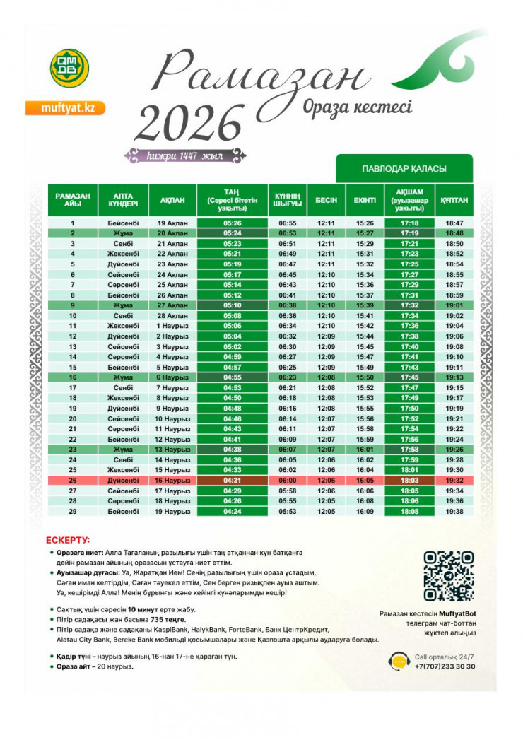 Қазақстан мұсылмандары діни басқармасы бекіткен Рамазан айының кестесі жарияланды, - деп хабарлайды Massaget.kz тілшісі.