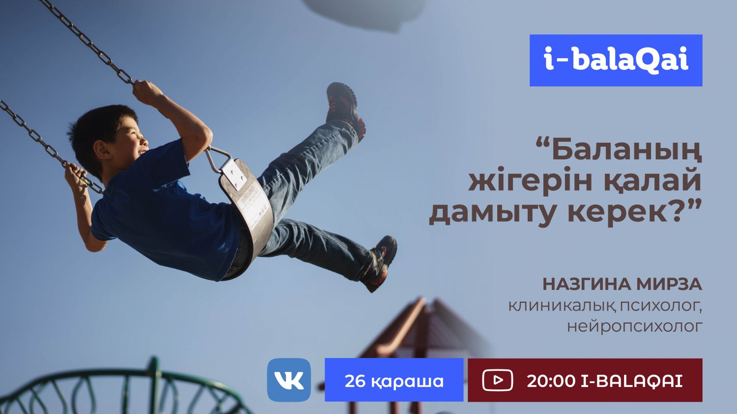 Бүгін, 26 қараша сағат 20:00-де I-BALAQAI YouTube-каналында көре аласыздар. Спикер "Баланың жігерін қалай арттыру керек" атты тақырыпта ойын айтады. Сондай-ақ маман баланы бәсекеге қабілетті етіп өсірудің жолдарын түсіндіреді.