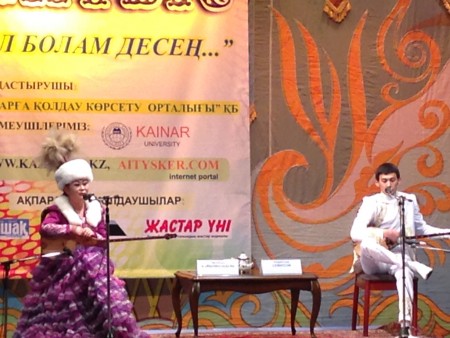 Ғ.Мүсірепов атындағы Қазақ Мемлекеттік Академиялық балалар мен жасөспірімдер театрының іші де, сырты да ығы-жығы адам. Айтыссүйер қауым залға лық толды. Еңбектеген баладан еңкейген қартқа дейін келген айтысты екінші қабатта түрегеп тұрып тамашалағандар да болды.