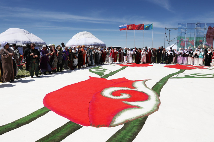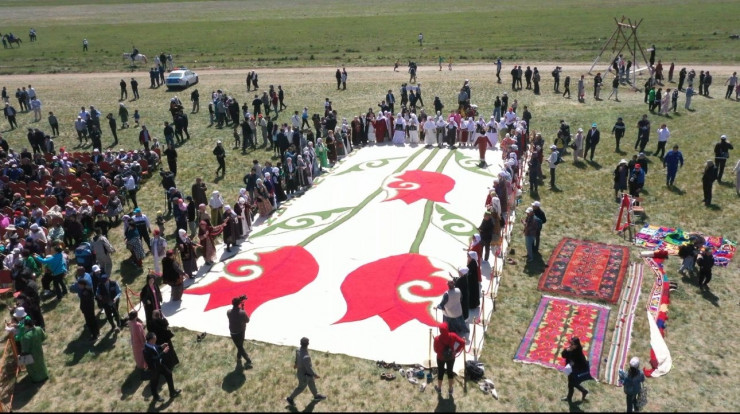Халықаралық "Қызғалдақ мұра" фестивалі аясында жамбылдық қолөнершілер 200 метрлік киіз басып, Қазақстанның КИНЭС рекордтар кітабына енді.