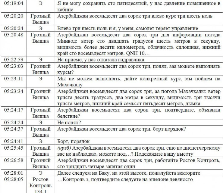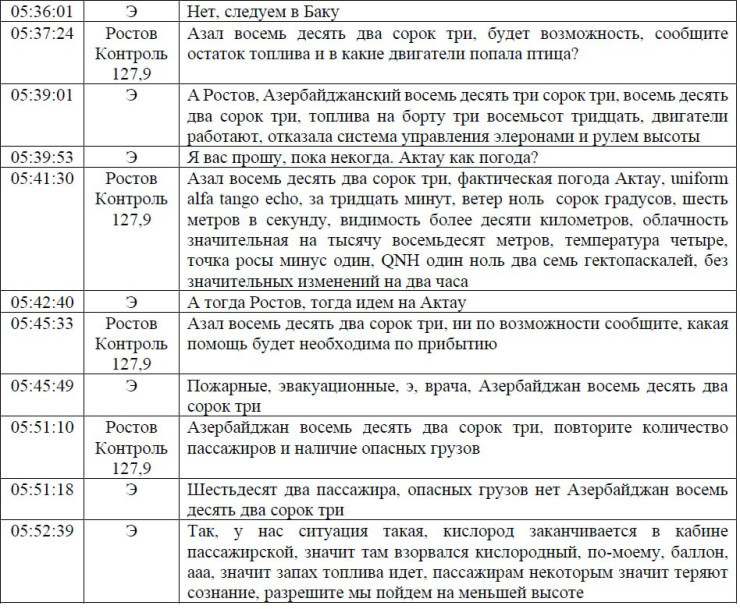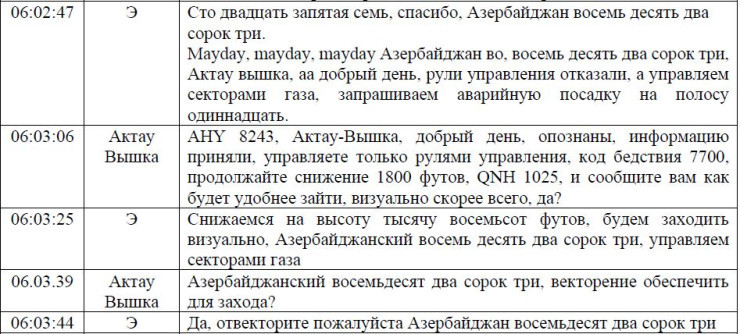 Қазақстан Көлік министрлігі 25 желтоқсанда Ақтау маңында апатқа ұшыраған Azerbaijan Airlines (AZAL) ұшағының апатқа ұшырауын тергеудің алдын ала нәтижелерімен есеп жариялады. Басқа нәрселермен қатар есепте ұшақ экипажының жердегі қызметтермен келіссөздері бар, - деп хабарлайды Massaget.kz тілшісі.