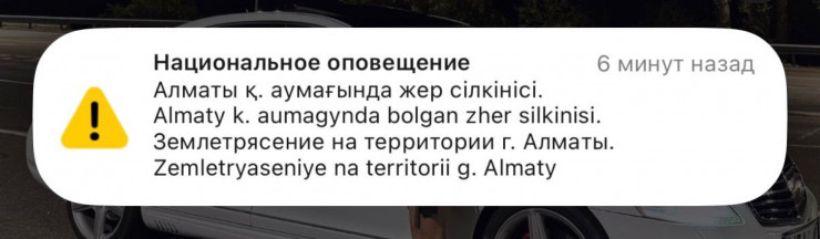 Тұрғындардың ұялы телефонына жер сілкінісі туралы хабарлама келді.