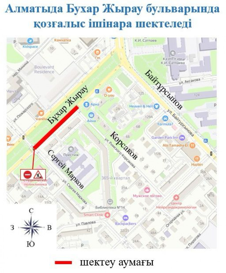 "Жоспарлы жұмыстарды жүргізу кезінде қауіпсіздікті қамтамасыз ету үшін 2025 жылғы 23 сәуір мен 10 маусым аралығында Бұқар Жырау бульвары бойынша Сергей Марков көшесінен Римский-Корсаков көшесіне дейін оңтүстік жағынан көлік қозғалысы ішінара жабылады. Уақытша қолайсыздықтарға түсіністікпен қарауды және осы учаскені айналып өту үшін алдын ала балама маршруттарды қарастыруды сұраймыз", - деп жазылған хабарламада.