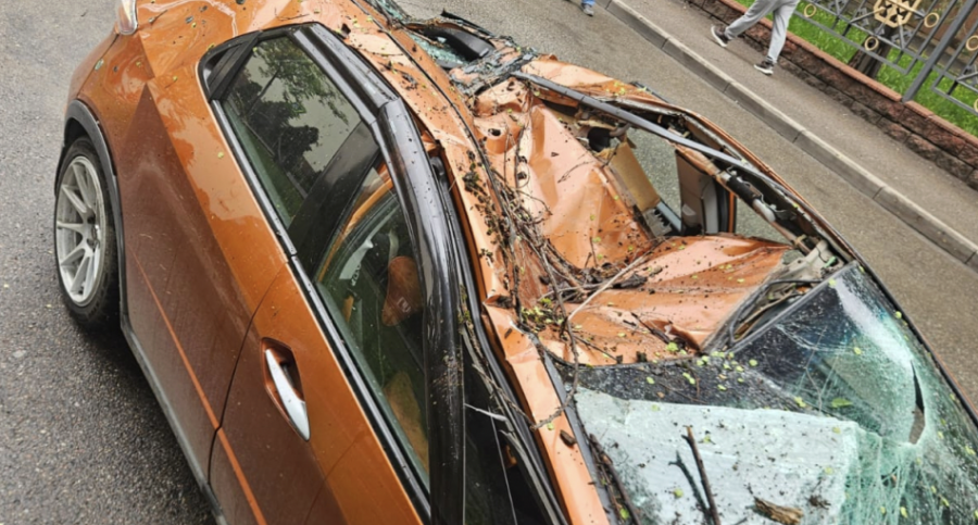 Алматыда ағаш жол бойына құлап, көшеде тұрған жеңіл көлікті зақымдады, - деп хабарлайды Massaget.kz тілшісі.