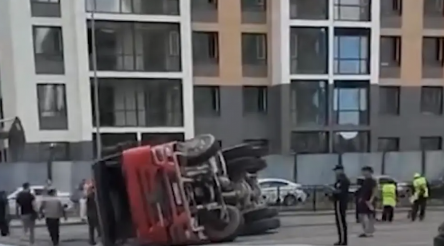 Әлеуметтік желілерде жарияланған бейнежазбалардан бетон тасығыш жүк көлігінің соқтығыстан кейін бір жағына қарай аударылғаны көрінеді. Жол-көлік оқиғасы Жұмабаев көшесінде болған.