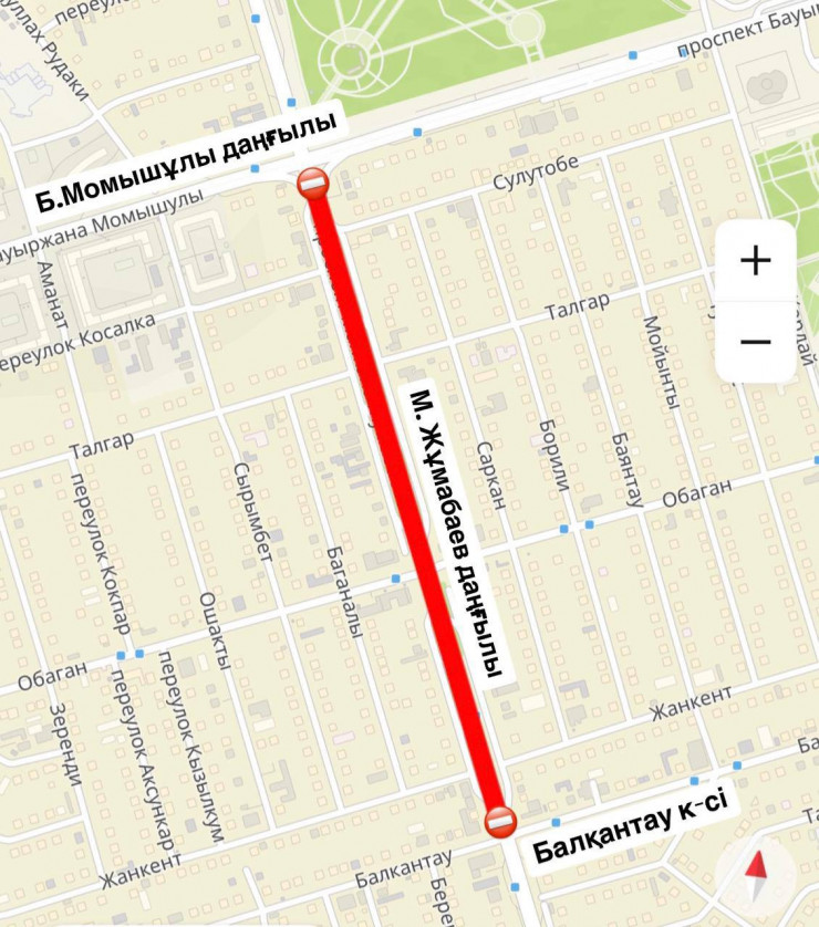 Әкімдік мәліметінше, 9-19 мамыр аралығында көрсетілген учаскеде қозғалыс ішінара жабылады.