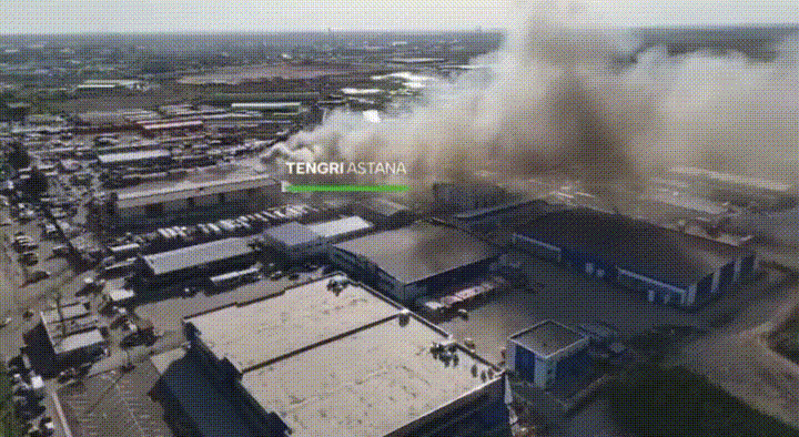 Өртсөндірушілер ғимараттың шатырын ашып, өртті сөндіріп жатқаны айтылды.