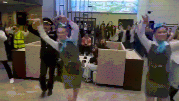 Музыканттар ұшып келген сәтте-ақ жанкүйерлер әуежайда қарсы алды. Кенеттен Everybody әуені ойнап, айналадағының бәрі билей жөнелді: еден жуушы, стюардессалар, ұшқыш және бизнес-терминалдағы жолаушылар. Продюсер Мәлік Хасеновтың айтуынша, флешмобқа 30 кәсіби биші қатысқан.