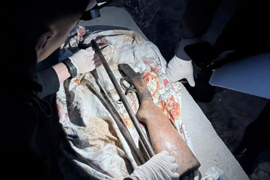 Жүргізілген жұмыс нәтижесінде азаматтың өз еркімен берген түсініктемесі бойынша заңсыз сақталған аңшы қаруы, 12 калибрлі 5 оқ-дәрі анықталған. Оның айтуынша, қаруды қабірдің ішіне жасырған.