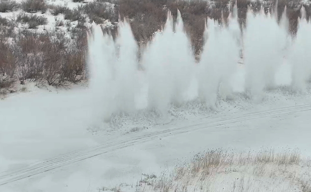 @abcnews Authorities in Kazakhstan carried out controlled explosions on frozen rivers ahead of the Spring thaw. The blasts are designed to prevent ice jams on the waterways.#abcnews #news ♬ original sound - ABC News
