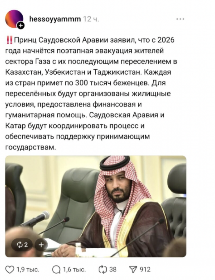 Олар Қазақстан, Өзбекстан және Тәжікстан елдеріне көшіріледі. Бұл туралы Сауд Арабиясының тақ мұрагері мәлімдеген екен.