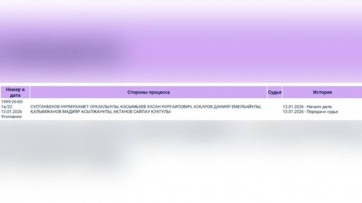 Бұл ақпарат Сот кабинеті сайтында пайда болды. Портал мәліметінше, іс судьяға бүгін, яғни 2026 жылғы 13 қаңтарда берілген.
