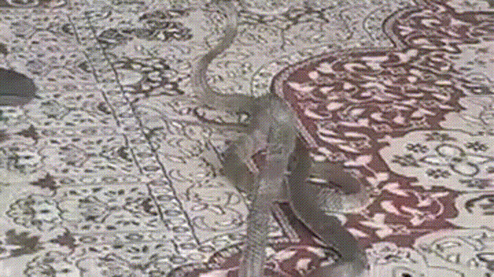 Кадрларда қойылымнан кейін жүргізуші жыландардың құйрығынан ақырын ұстап, бір-бірден қорапқа салғаны көрінеді. Қойылым кезінде айналасында балалар отырғаны да байқалады.