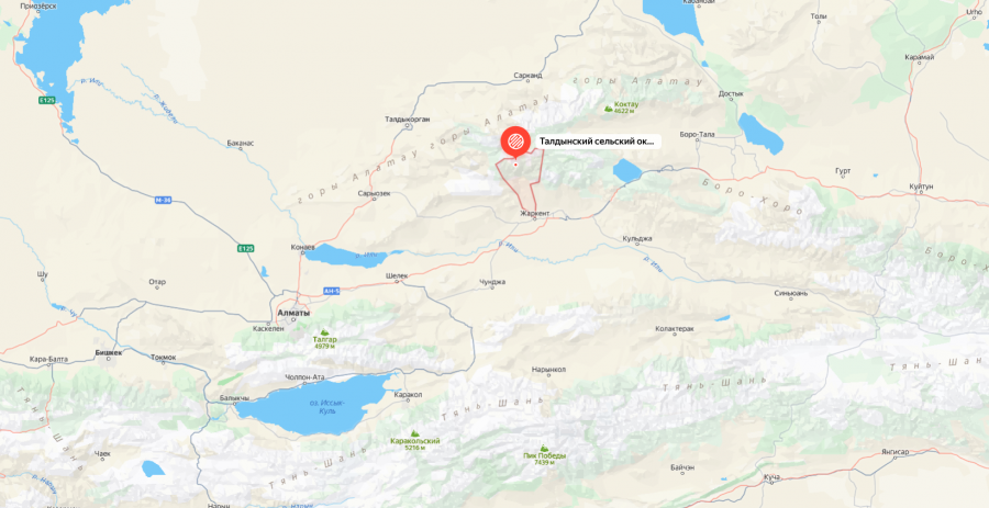 Картадағы мәлімет бойынша жер сілкінісінің ошағы Алматыдан солтүстік-шығысқа қарай 298 шақырым жерде орналасқан.