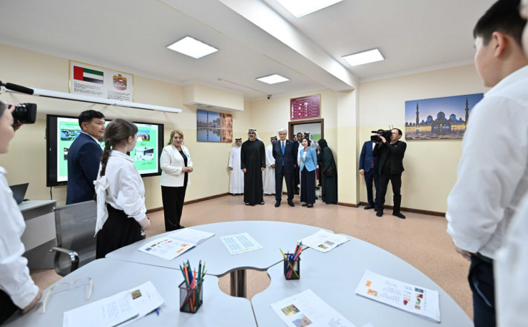 Қасым-Жомарт Тоқаев пен шейх Халед бен Мұхаммед бен Заид Әл Нахаян араб тілі кабинетін көрді. Мектеп оқушылары араб тілі мен әдебиетін меңгеруде жеткен жетістіктерін танытты.