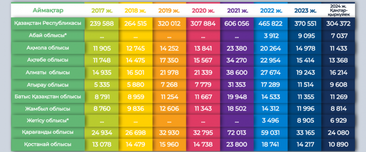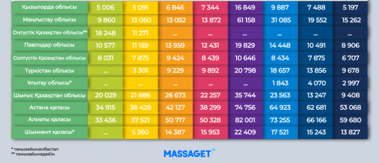 Мәселен, Астанада жыл басында шаршы метр үшін баға 477 мың теңге болды. Ақпан және наурыз айларында баға күрт көтерілді, бірақ кейін маусым-шілде айларында шаршы метр үшін 476 мыңға дейін төмендеді де, тамызда қайта өсті. Осылайша, биыл қаңтардан қарашаға дейін 2,9 пайызға қымбаттады.