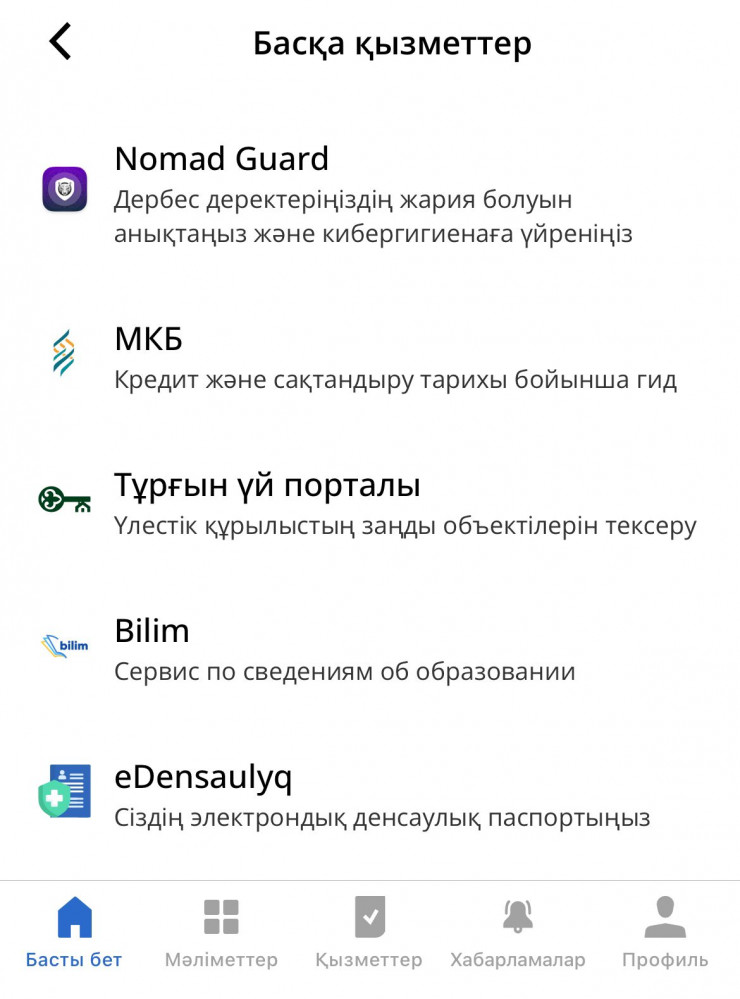 - "Басқа қызметтер" бөліміне өту;