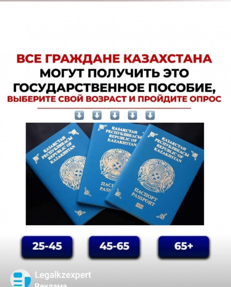 WhatsApp-та "25 жастан бастап 65-тен асқандарға дейін мемлекеттік жәрдемақы тағайындалуға тиіс" деген хабарлама тарап жүр. Оны алу үшін сауалнамадан өту керек екен. Алайда бұл ақпарат шындыққа жанаспайды, - деп хабарлайды Massaget.kz тілшісі stopfake.kz-ке сілтеме жасап.