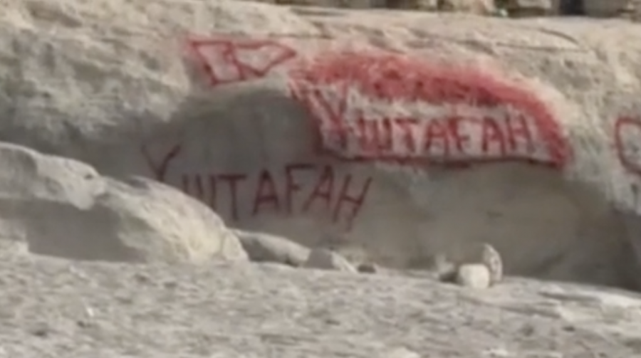 Желіде туристер Маңғыстаудағы жартасқа граффити салғаны туралы ақпарат пайда болды. Граффити бейнеленген видео YouTube арналардың бірінде жарияланған. Кадрлардан жартаста үлкен әріптермен "Үштаған" деп жазылғанын байқауға болады. Алайда бұл граффити қай жерде және қашан жасалғаны нақты көрсетілмеген.